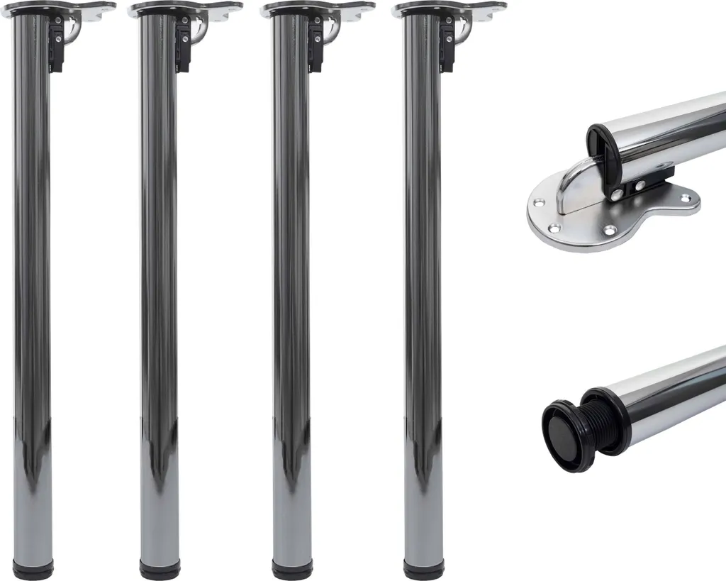 4er-Set Tischbein HWC-H34, Für Schreibtisch Esstischfuß Tischgestell, Klappbar 72cm Edelstahl-Optik
