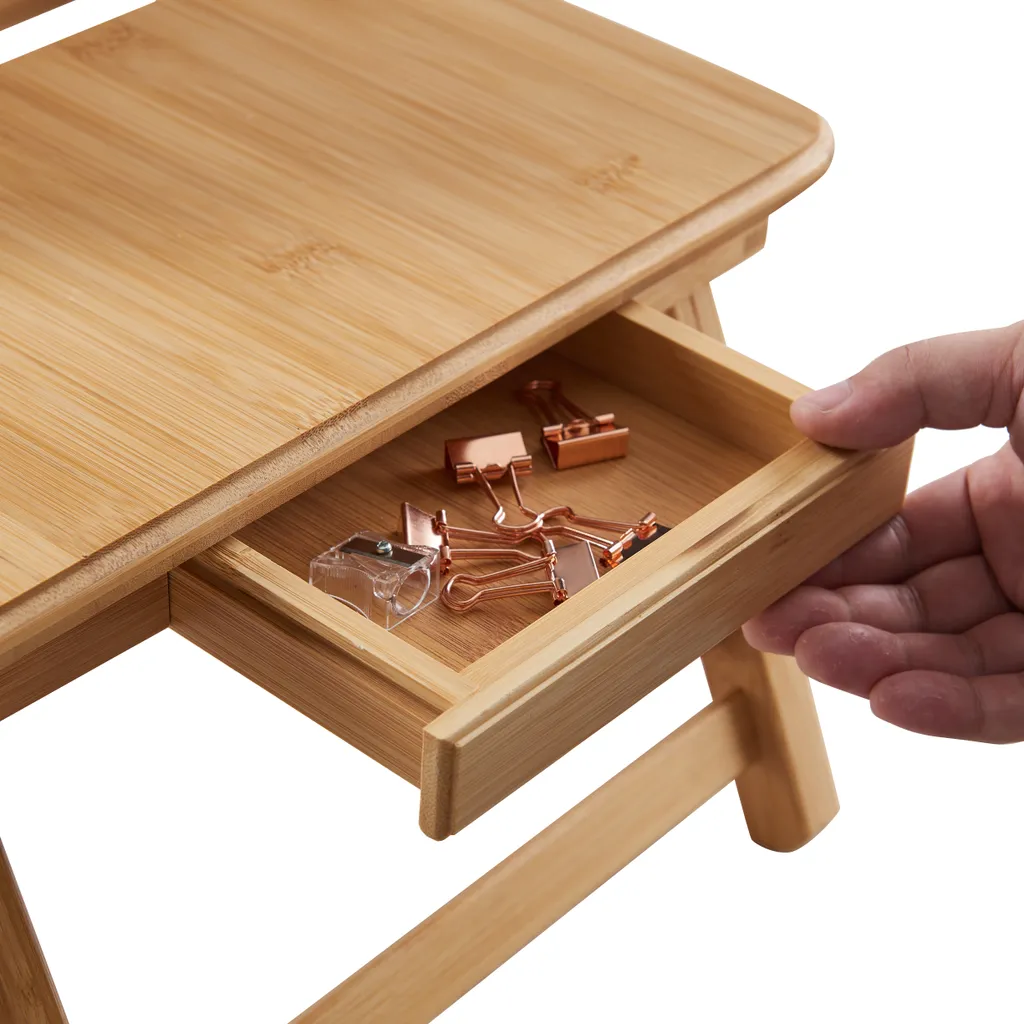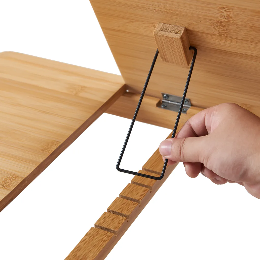 ACAZA Laptop-Tisch Mit Schublade, Verstellbare Höhe Von 22 Bis 29 Cm, Bambusholz