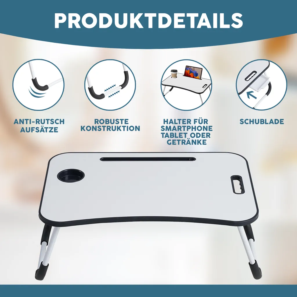 Albatros Laptoptisch Für Bett Mit Schublade FLIP – Laptop Tisch / Tablett, Div Farben U Holz, Klappbar – Laptop Tisch Für Couch / Sofa Oder Laptop Ständer Für Bett Mit Handy/Tablet-Halter Oder Tablett Für Frühstück (weiss)