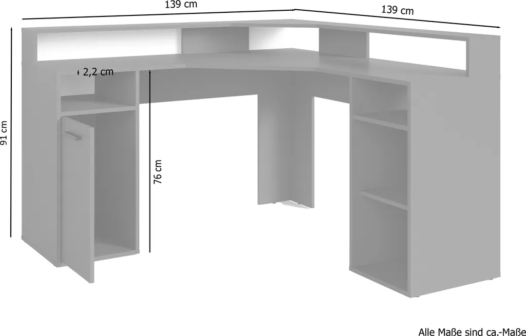 ByLIVING Schreibtisch Fox, Breite 139 Cm, Anthrazit, Mit Viel Stauraum