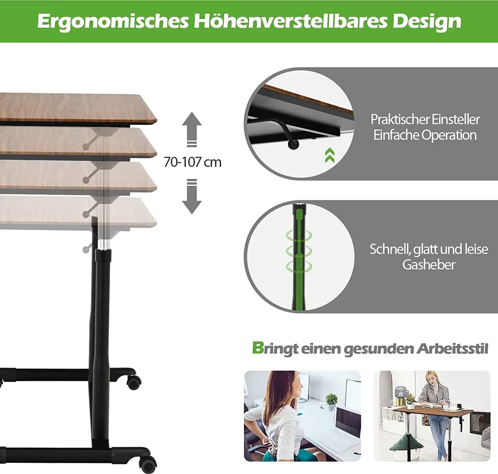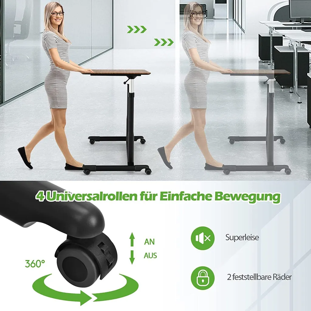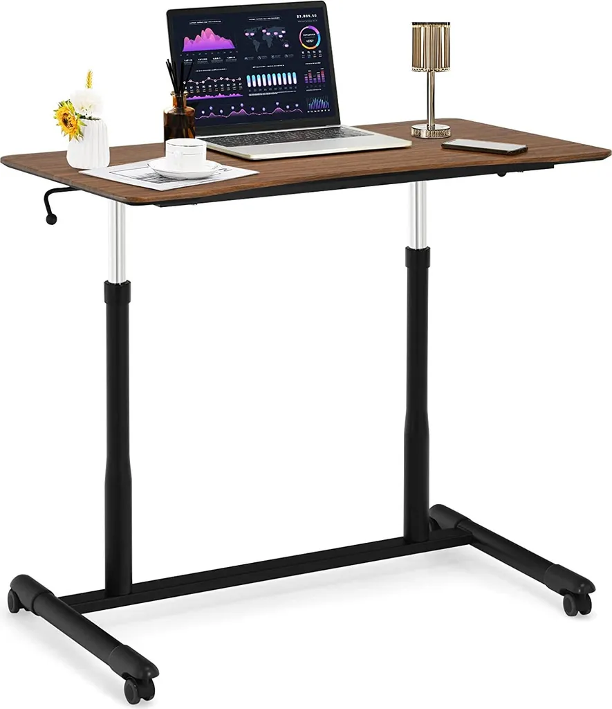 COSTWAY Computertisch Höhenverstellbar Von 70-107cm, Schreibtisch Mobile Mit Rollen, Rollentisch Laptoptisch Mit 2 Bremsen, Notebooktisch (Braun)