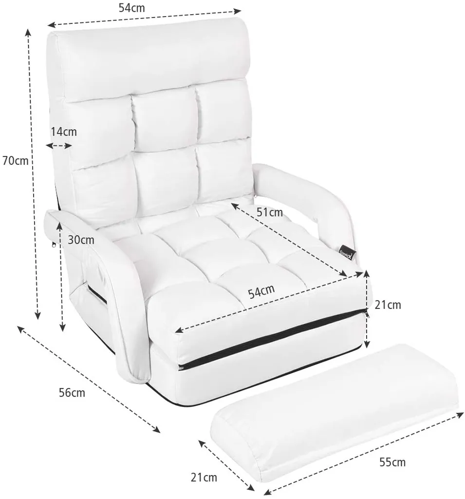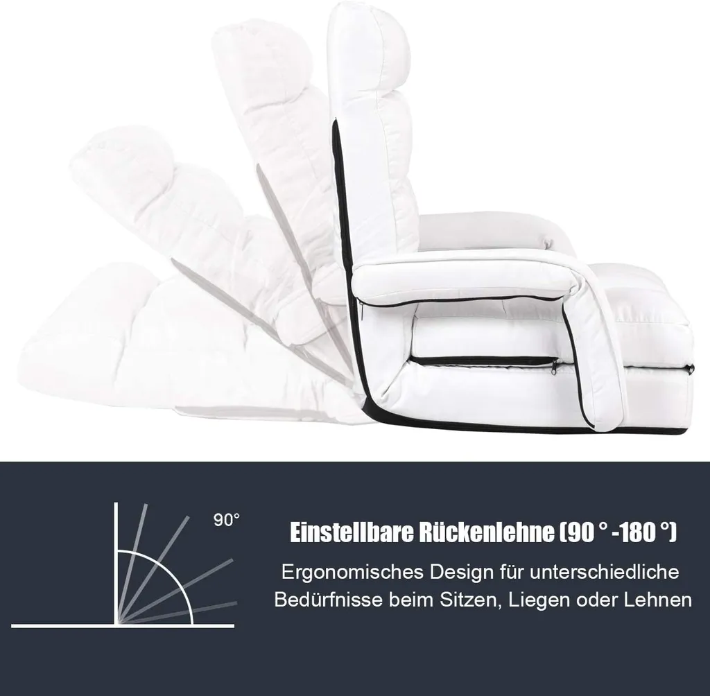 COSTWAY Klappsofa Verstellbar, Bodenstuhlsofa Mit Armlehnen Und Kissen, Weiß