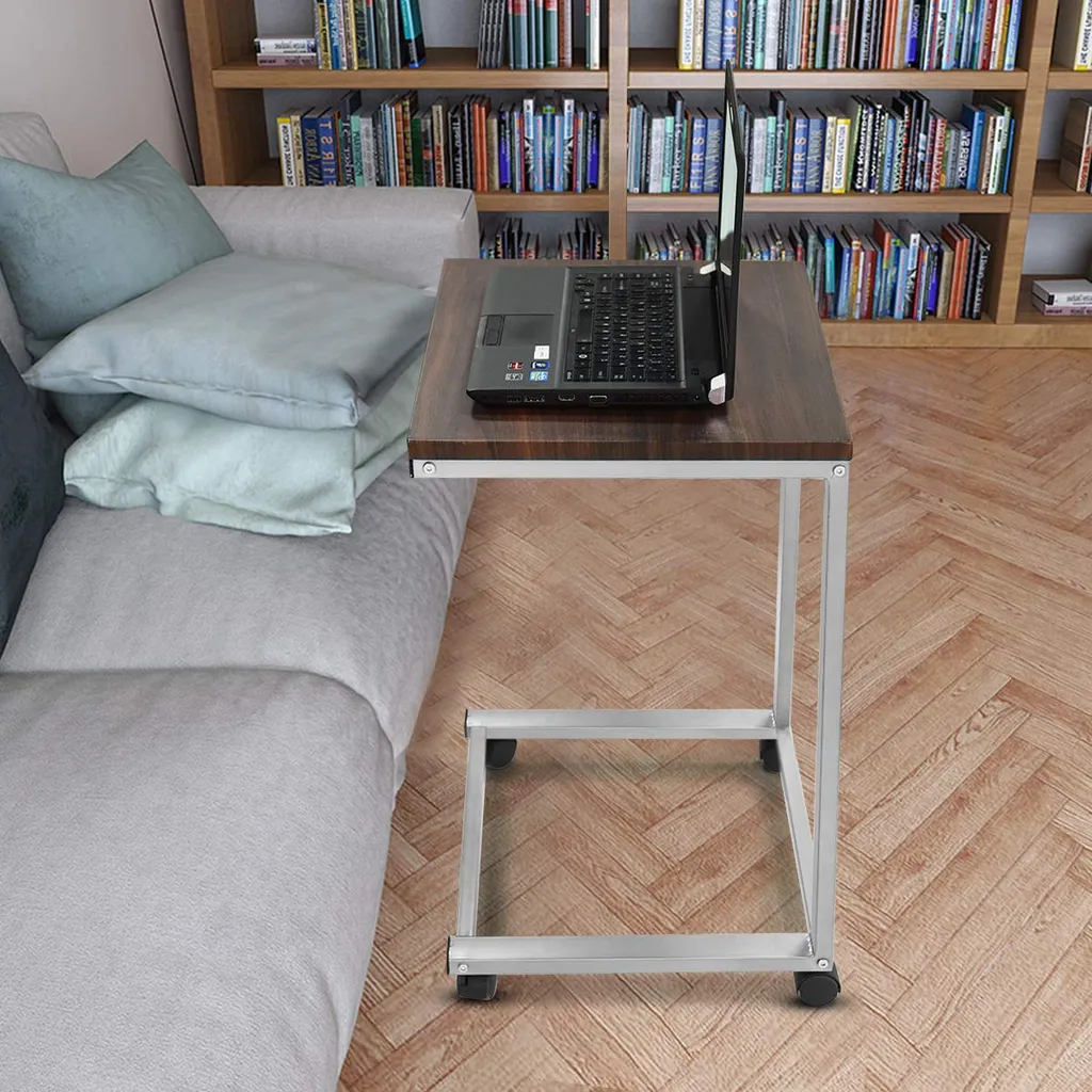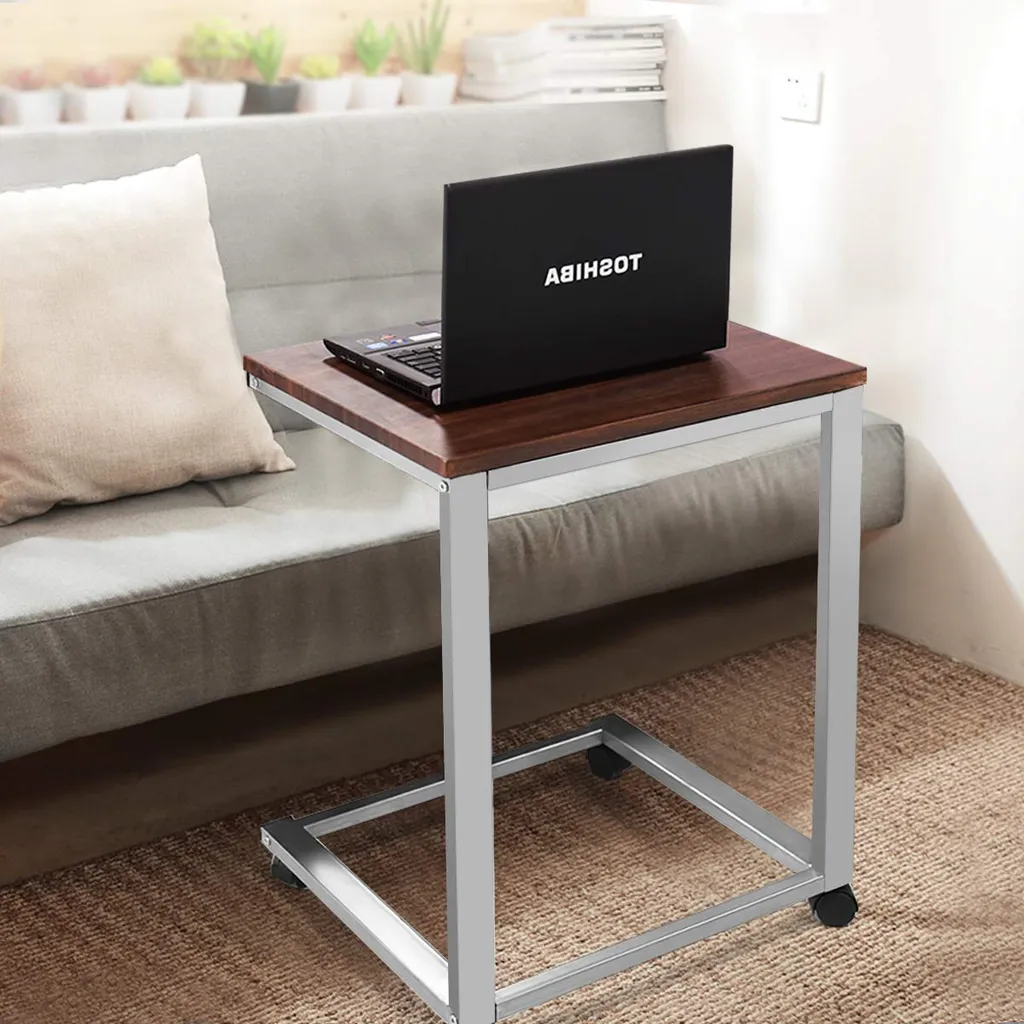 COSTWAY Laptoptisch Mit Rollen, Beistelltisch Sofatisch Notebooktisch Pflegetisch Ablagetisch Metall + Holz 50x40x65cm