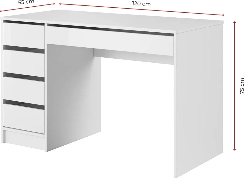 Domando Schreibtisch Licata Modern Für Büro Breite 120cm, Beidseitig Montierbar In Weiß Matt Und Weiß Hochglanz