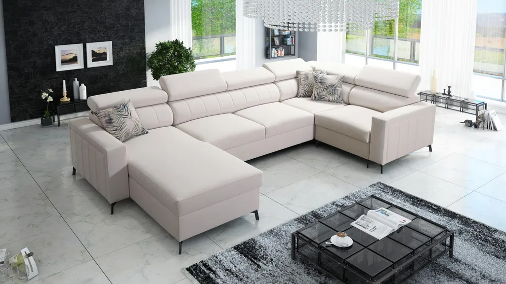 | Zusätzliche Varianten | Ecksofa mit Schlaffunktion Latina U-Form Bettkasten Ottomane Links, Ecksofa mit Schlaffunktion Latina U-Form Bettkasten Ottomane Rechts |