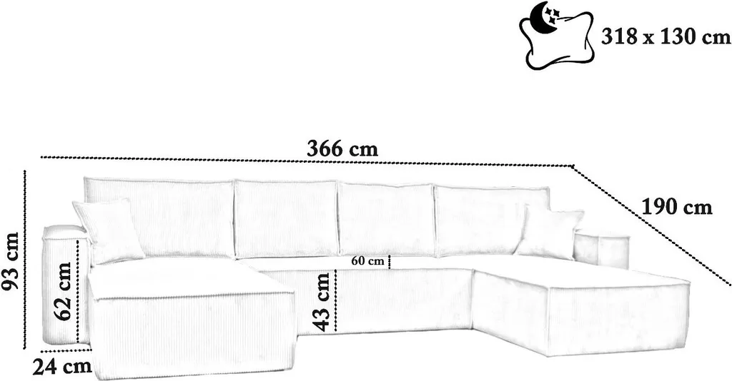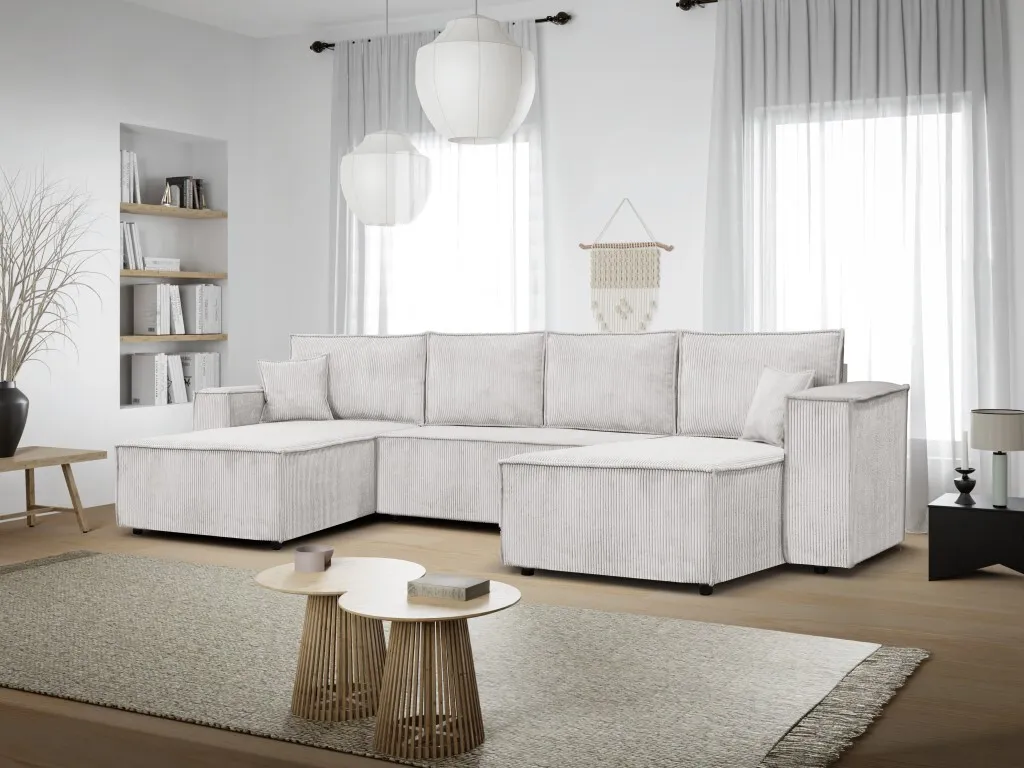 Ecksofa Passio U-Form Mit Schlaffunktion Und Bettkasten 366 Cm Lieferung Bis In Die Wohnung Wohnlandschaft Schlafcouch Sofa (Poso 100 – Beige)