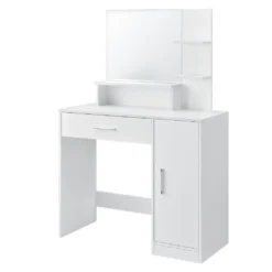 Italform Schminktisch Mit Hocker Und Drehbaren Spiegel Weiß 4 Schubladen 75 X 147 X 40cm