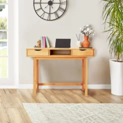 Schreibtisch Mit Regal HWC-K68, Laptoptisch Bürotisch Arbeitstisch, 100x50cm, Metall MDF Braun