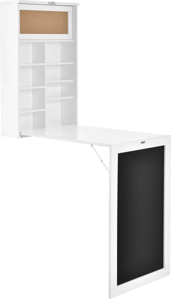 [en.casa] Klappschreibtisch Schreibtisch Zum Ausklappen Wandklapptisch Mit Tafel Und Pinnwand Weiß