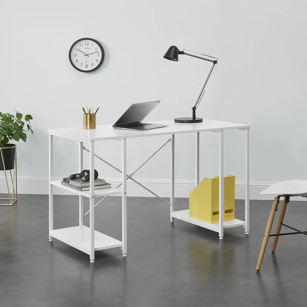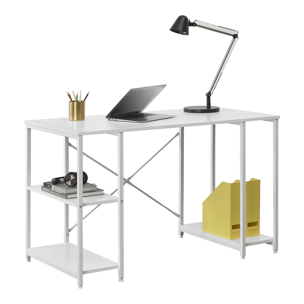 [en.casa] Schreibtisch Aarhus Mit 3 Ablagen In Weiß Bürotisch Mit Regalen Computertisch Arbeitstisch PC Tisch