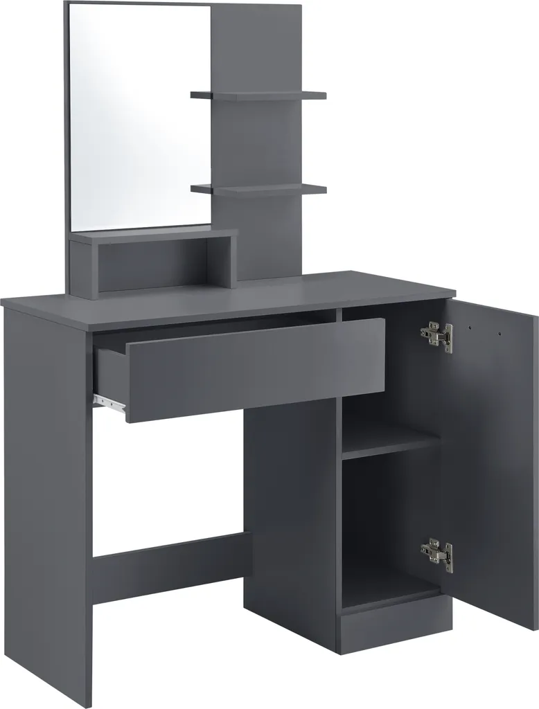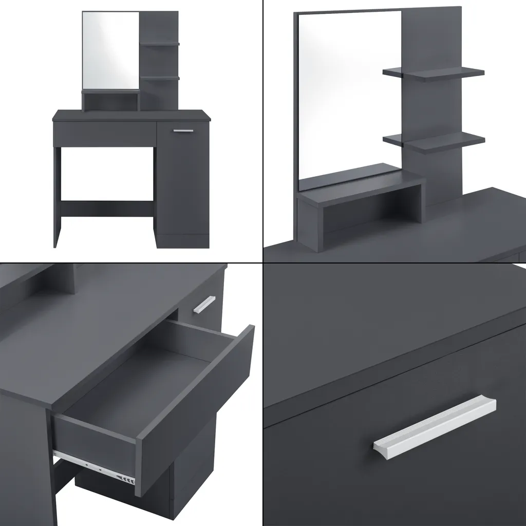 Frisierkommode Mit Spiegel Schrank Und Schublade Frisiertisch 138 X 90 X 38 Cm Schminktisch Mit Ablageflächen Spanplatte Dunkelgrau [en.casa]