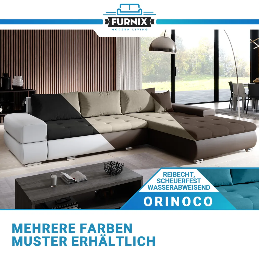 FURNIX Arzo Sofa L-Form Eckcouch Schlafsofa Couch Mit Schlaffunktion MA120-OR96