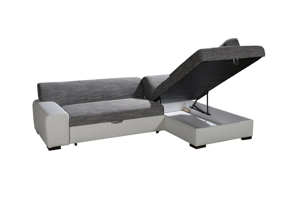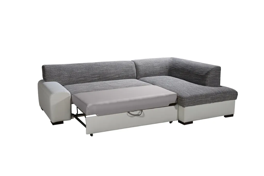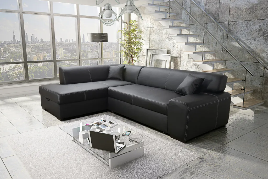 Furnix Sofa Couch NOSMISS Mit Schlaffunktion Und Bettkasten Kunstleder Schwarz MA1100