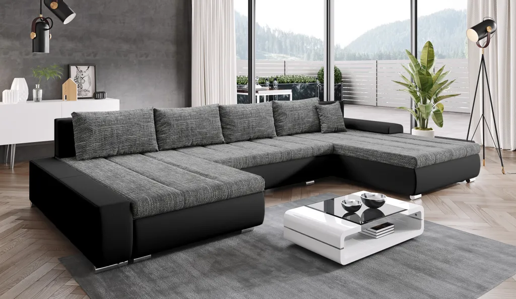 FURNIX Wohnlandschaft ELISABETTA Couch Schlafsofa U-Form U-Sofa Mit Schlaffunktion Und Bettkasten GRAU MELANGE MA1100+BE 01