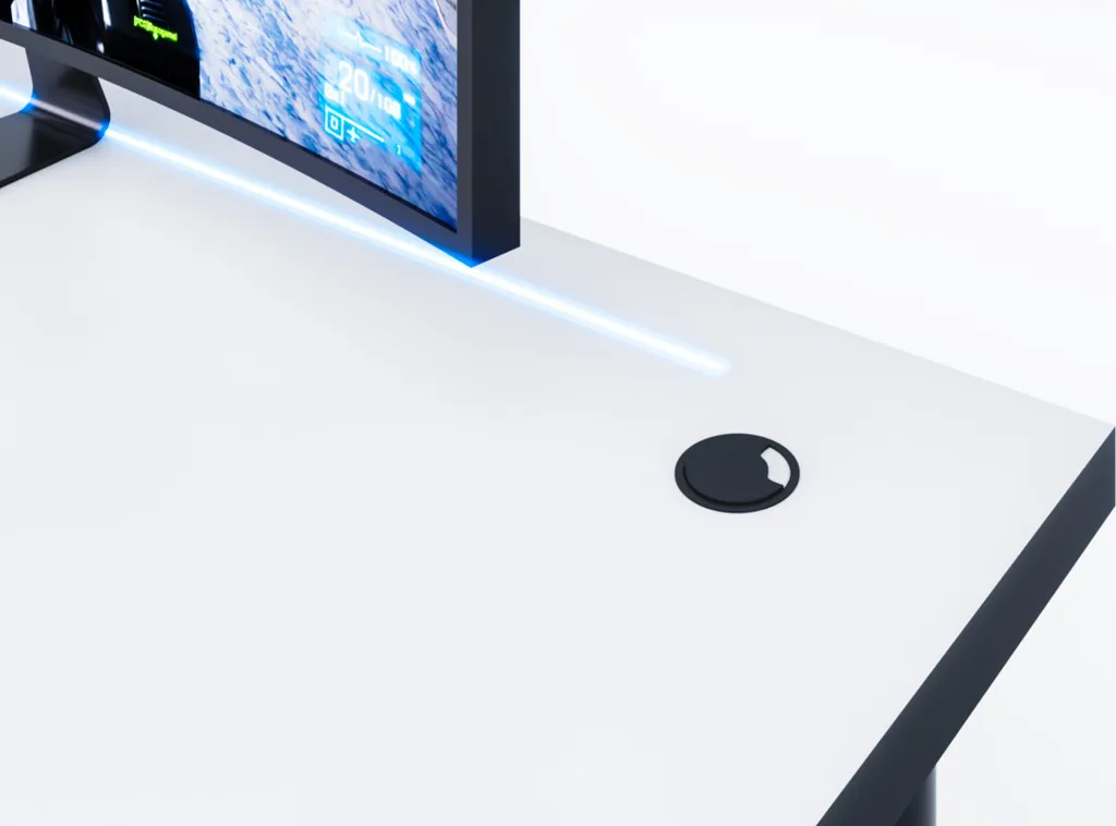 Gaming Tisch CODE X1, Computertisch, Gametisch, PC Tisch Schreibtisch , 135×73-76×65, Weiß/schwarze Beine