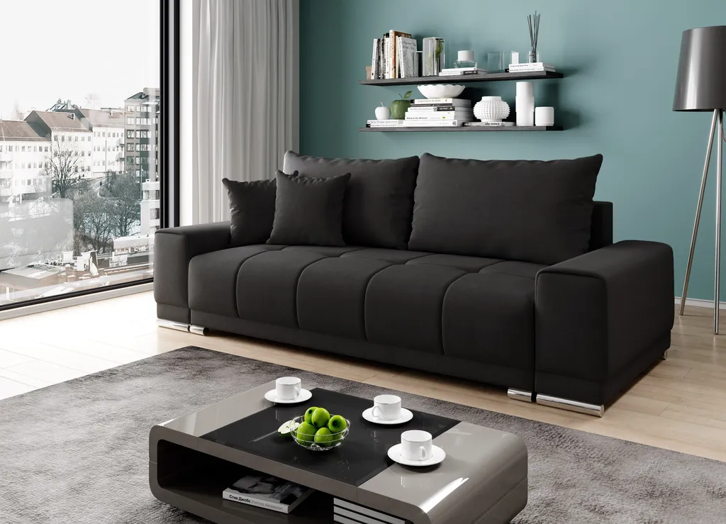 GRAINGOLD Isko 3-er Sofa – Bettsofa, Schlafsofa – Schlaffunktion & Bettkasten – Schwarz