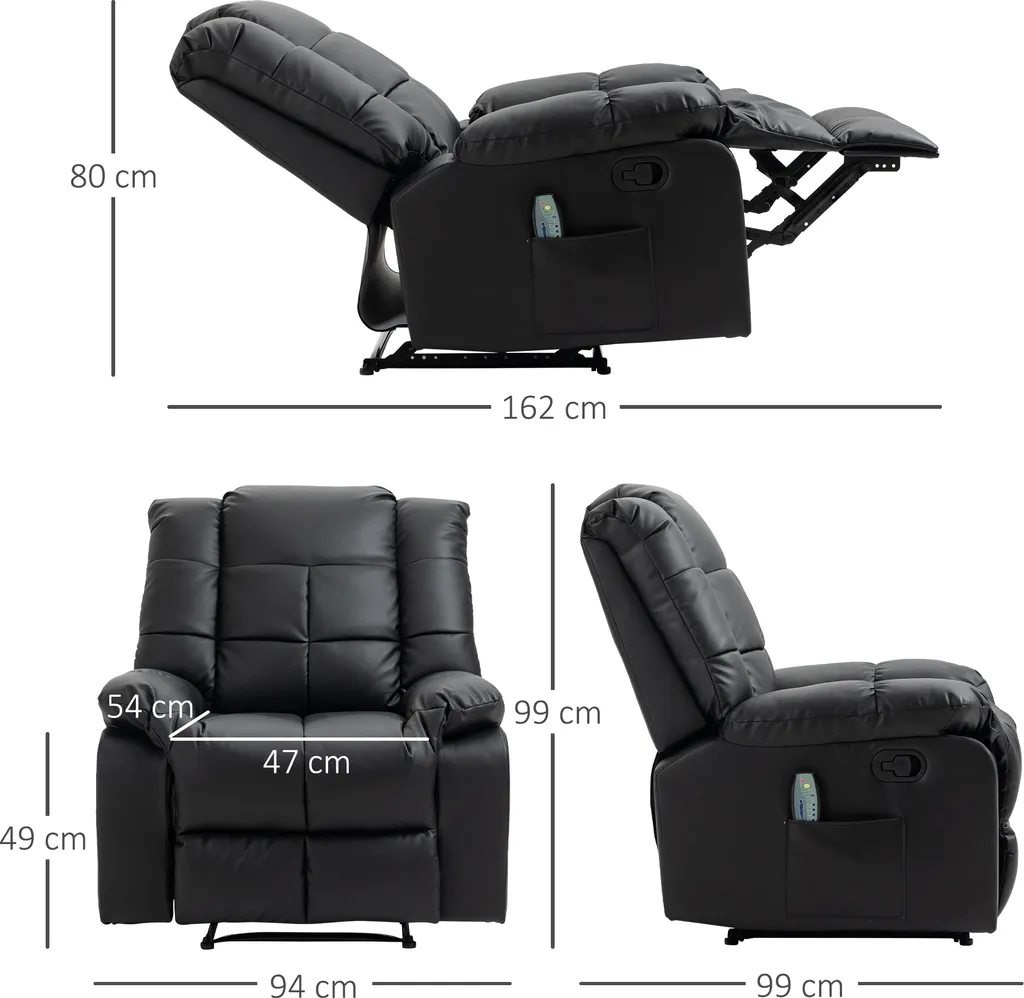 HOMCOM Elektrischer Massagesessel Relaxsessel Mit Liegefunktion Fernsehsessel Massagesofa Mit 8 Massagepunkte Und Tasche Schwarz 94 X 99 X 99 Cm