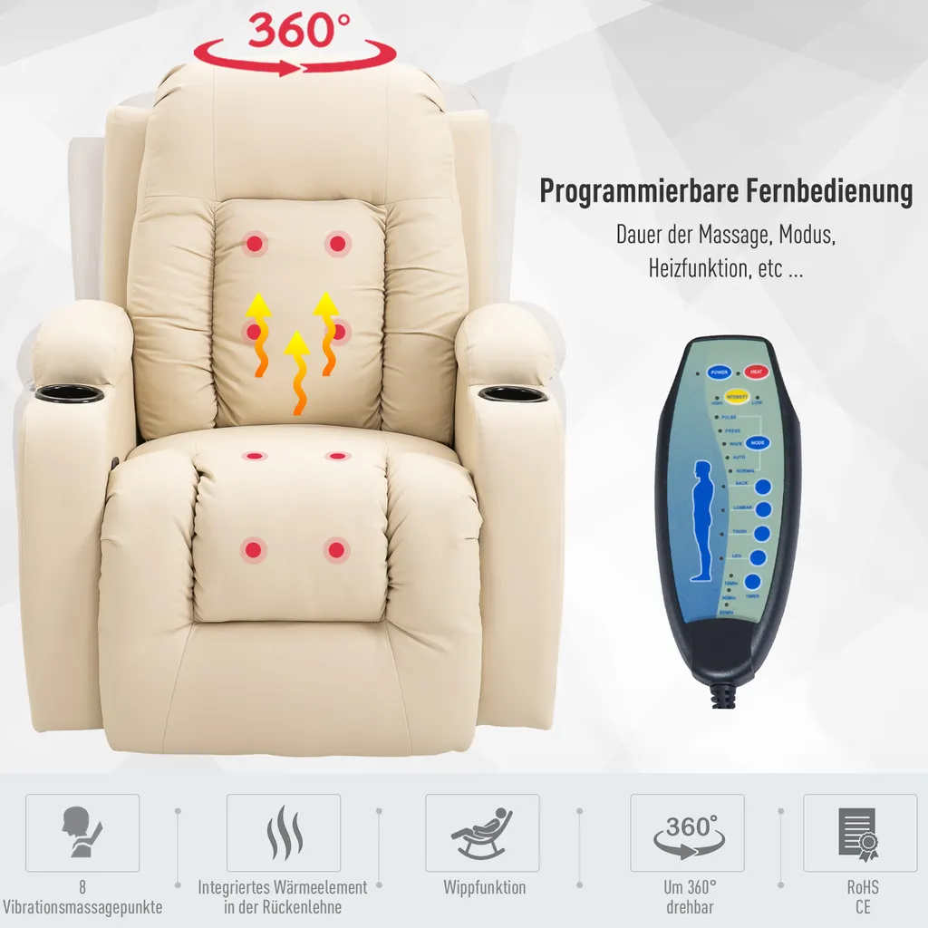 HOMCOM Massagesessel Fernsehsessel Relaxsessel TV Sessel Wärmefunktion Mit Fernbedienung Liegefunktion Und Getränkehaltern (creme)