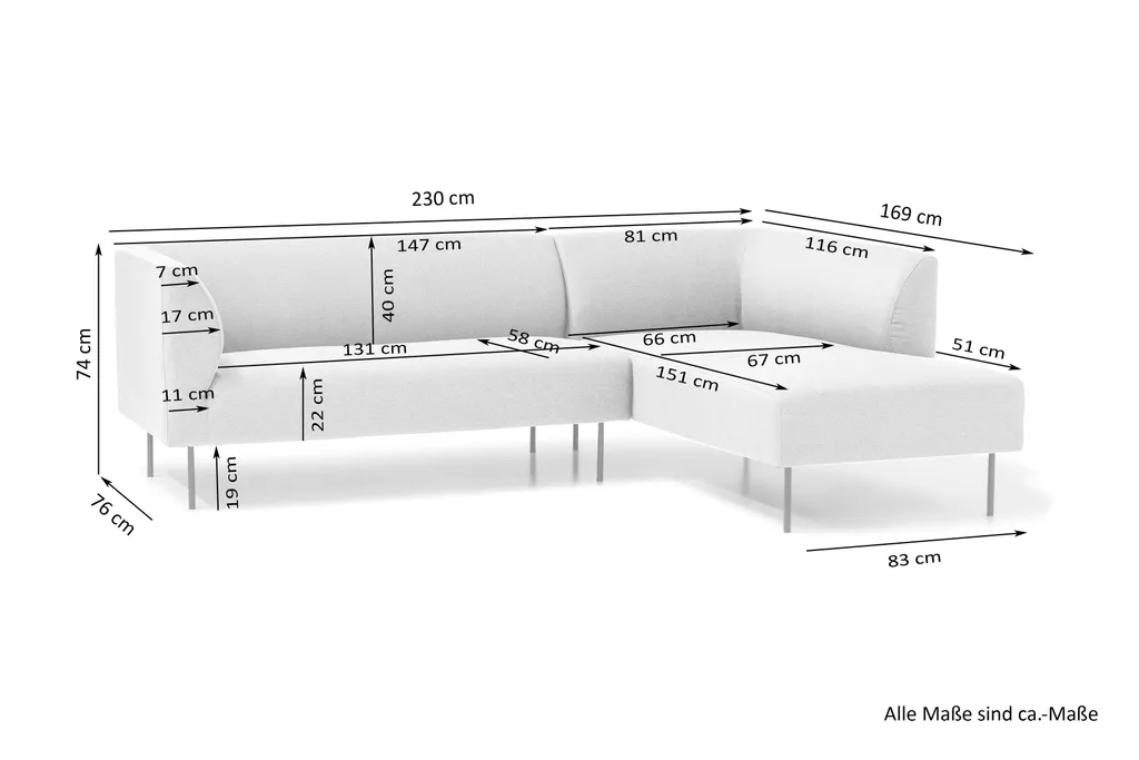 | Zusätzliche Varianten | HOMEXPERTS Ecksofa links KERSTIN 169 x 230, H 74 cm grau 3 Sitzplätze, HOMEXPERTS Ecksofa rechts KERSTIN 230 x 169, H 74 cm grau 3 Sitzplätze |