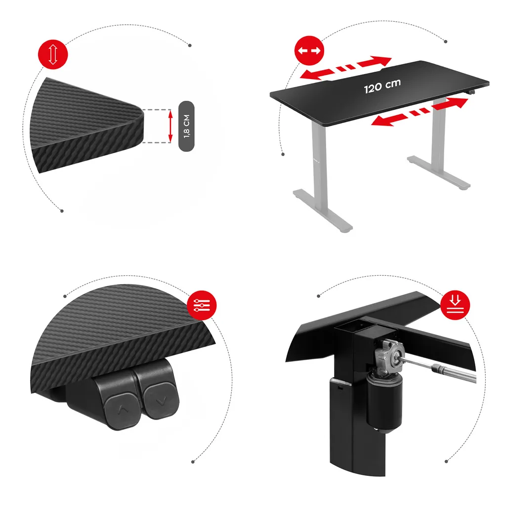 Huzaro Hero 8 0 Gaming Tisch Elektrisch Computertisch Schreibtisch 120 X 60 Cm Höhenverstellbare Tischplatte Schwarz