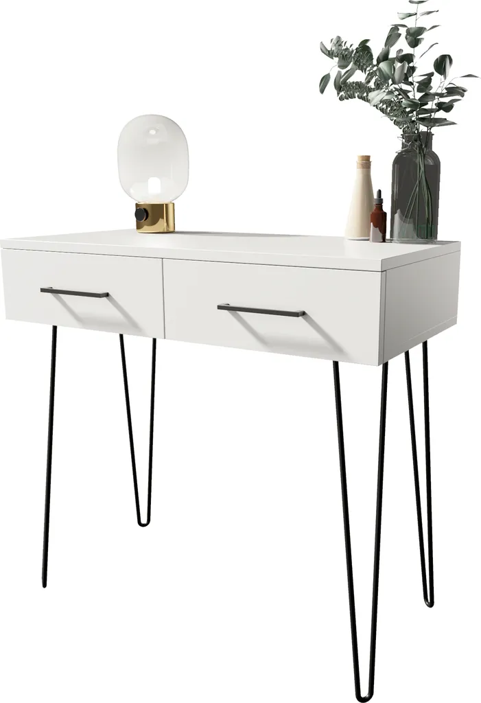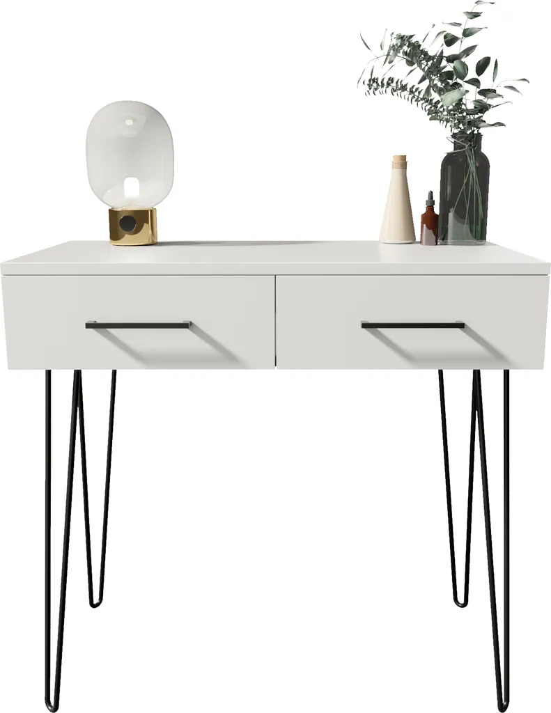 MATKAM Schminktisch Glamour, Mit 2 Schubladen, B100 X H76 X T37 Cm, Stellfüße Aus Metall (Weiß-Schwarz)