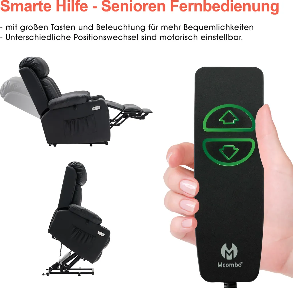| Zusätzliche Varianten | MCombo Elektrische Aufstehhilfe Relaxsessel 3 Motoren getrennt verstellbar 7550BK, MCombo elektrische Aufstehhilfe Fernsehsessel Relaxsessel Echtleder 7190BK |