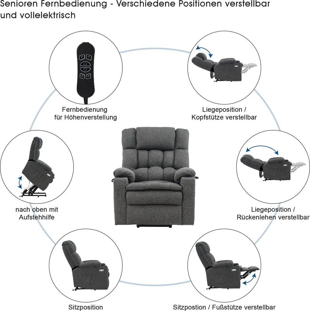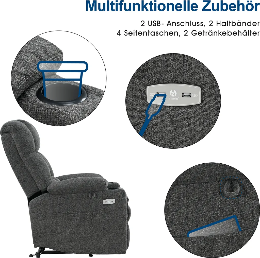 MCombo Elektrische Aufstehhilfe Relaxsessel 3 Motoren Getrennt Verstellbar 7546 DE