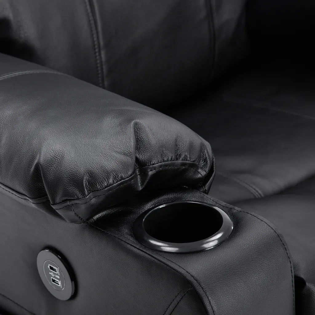 MCombo Leder Massagesessel Fernsehsessel Relaxsessel Dreh Schaukel Heizung USB Manuell Verstellbar Echtleder 7050BK