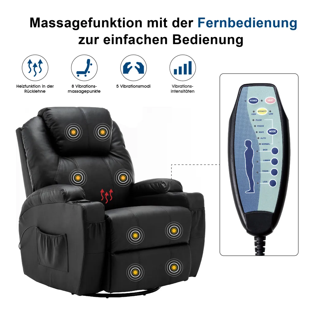 MCombo Massagesessel Fernsehsessel Relaxsessel + Heizung Mit Dreh+Schaukel Manuell Verstellbar 7020BK