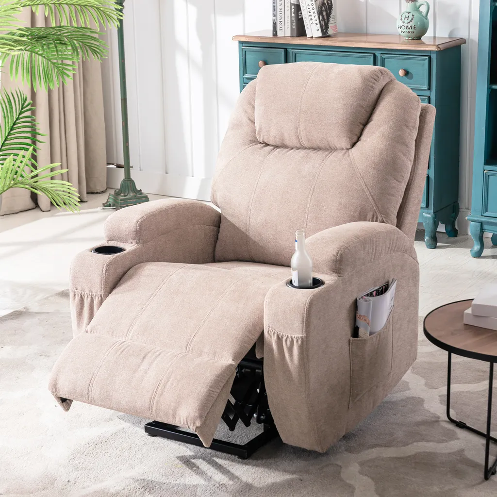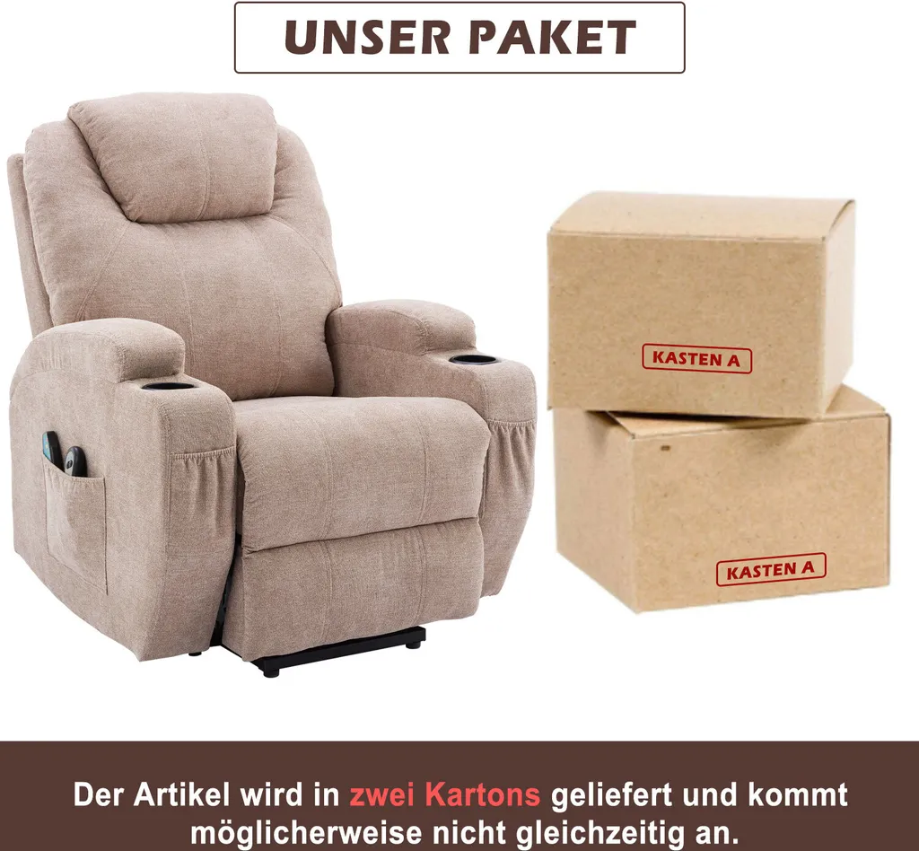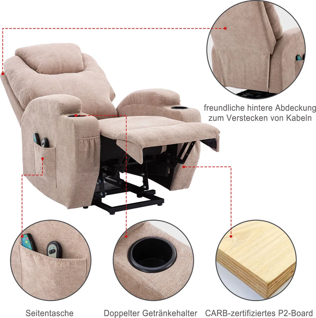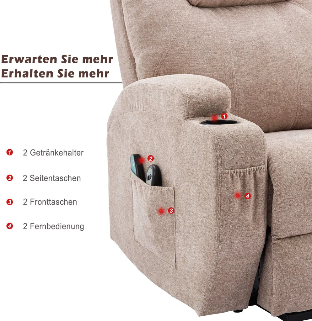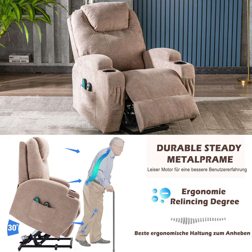 Merax Elektrisch Aufstehhilfe Relaxsessel Massagesessel Mit Wärmefunktion Und Vibrationsmassage, Fernsehsessel Mit Relaxfuntion, Fernbedienung Und USB, Hellgrau