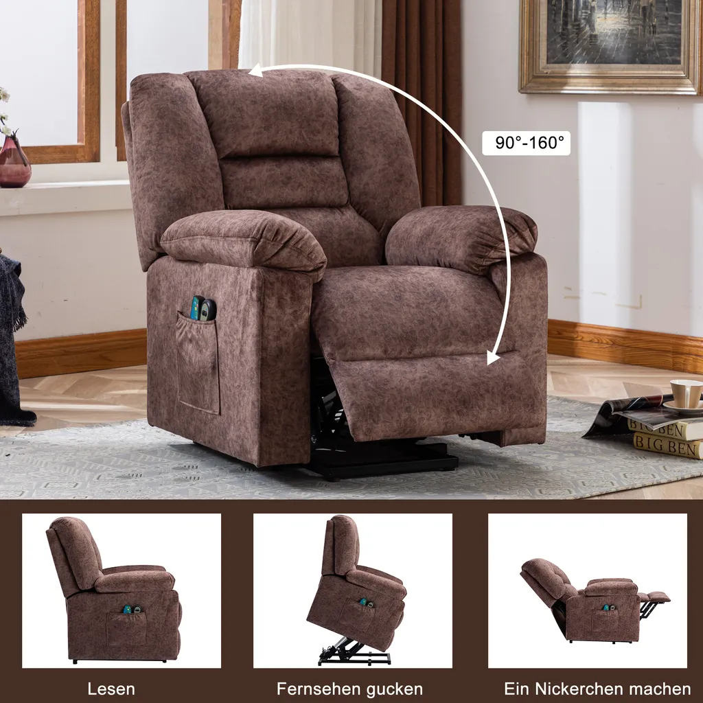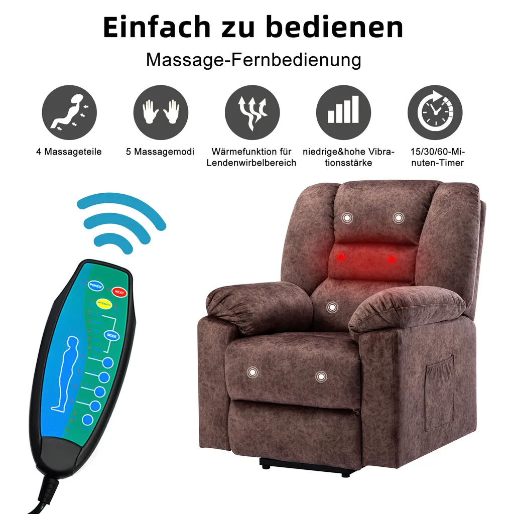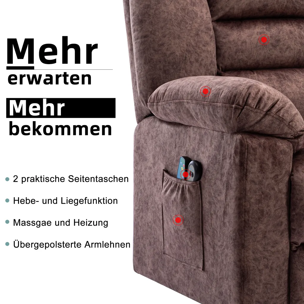 Merax TV-Sessel Elektrische Aufstehhilfe Relaxsessel Fernsehsessel Massagesesel Mit Liegefunktion, Wärmefunktion Und Vibrationsmassage, Retro-/ Vintage Stil, Belastbar Bis 150 Kg, Braun