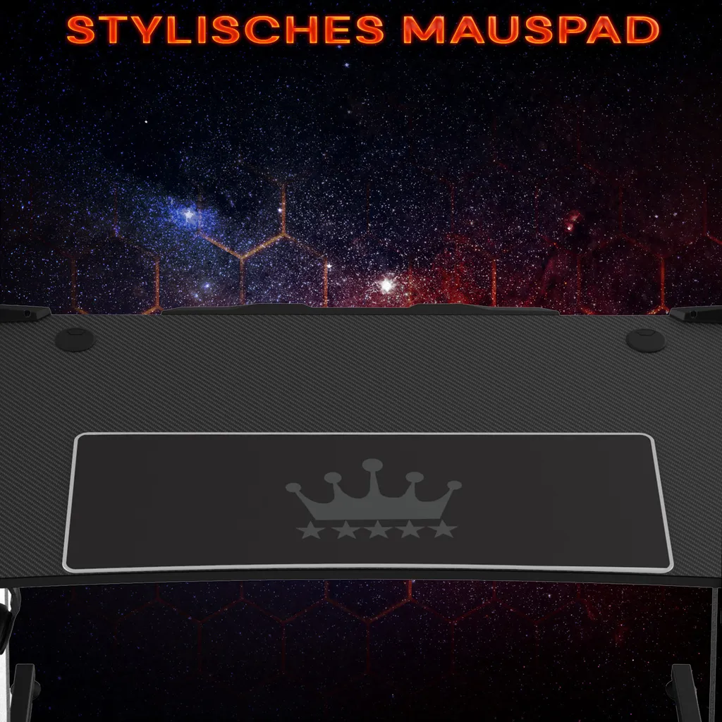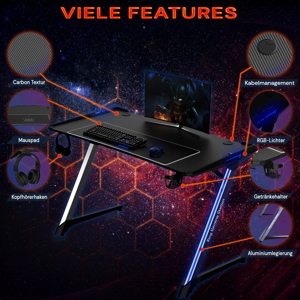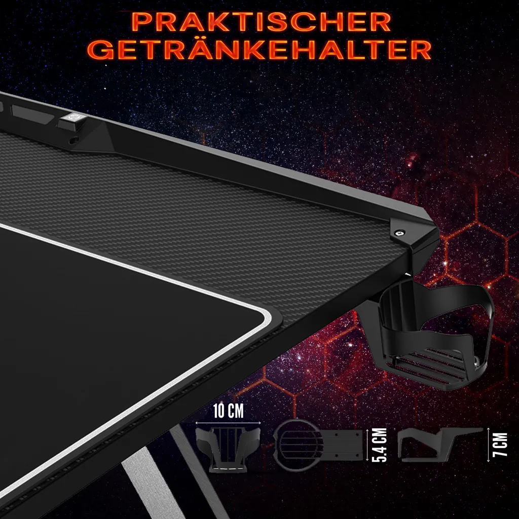 Midori® Gaming Computertisch Racing Gamer Tisch Mit RGB-Lichtern & Carbon Optik