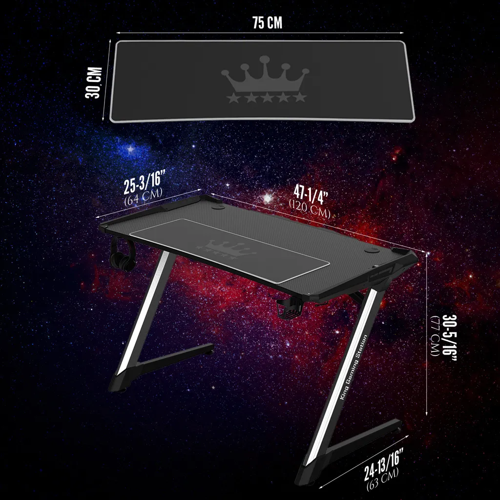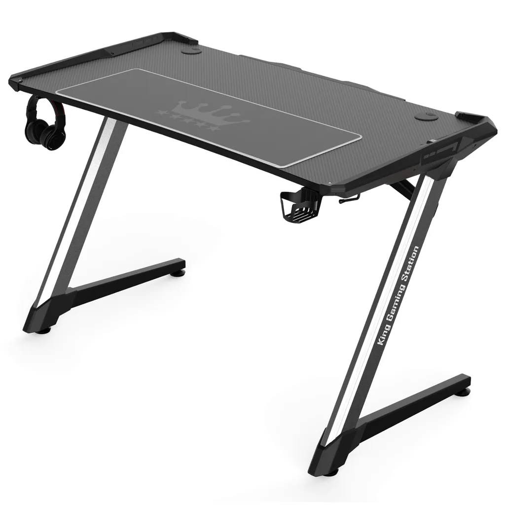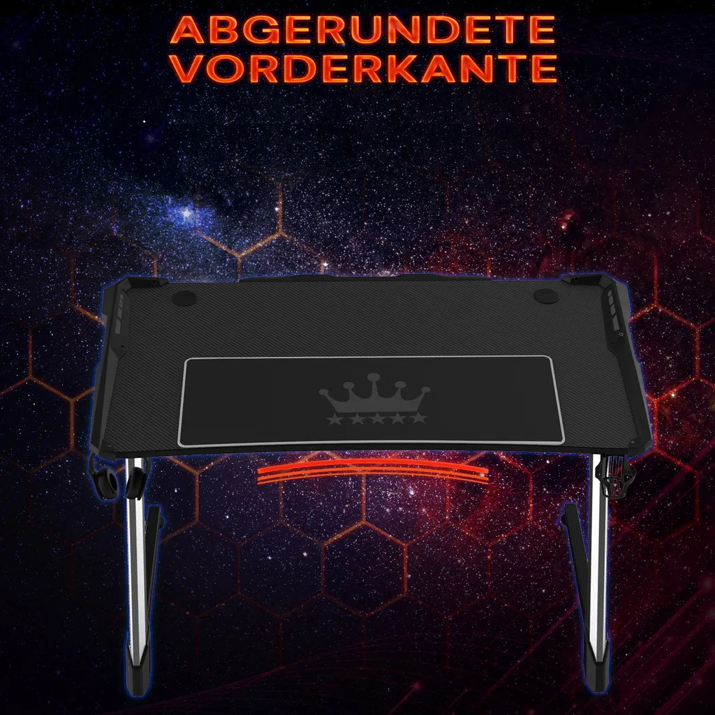 Midori® Gaming Computertisch Racing Gamer Tisch Mit RGB-Lichtern & Carbon Optik