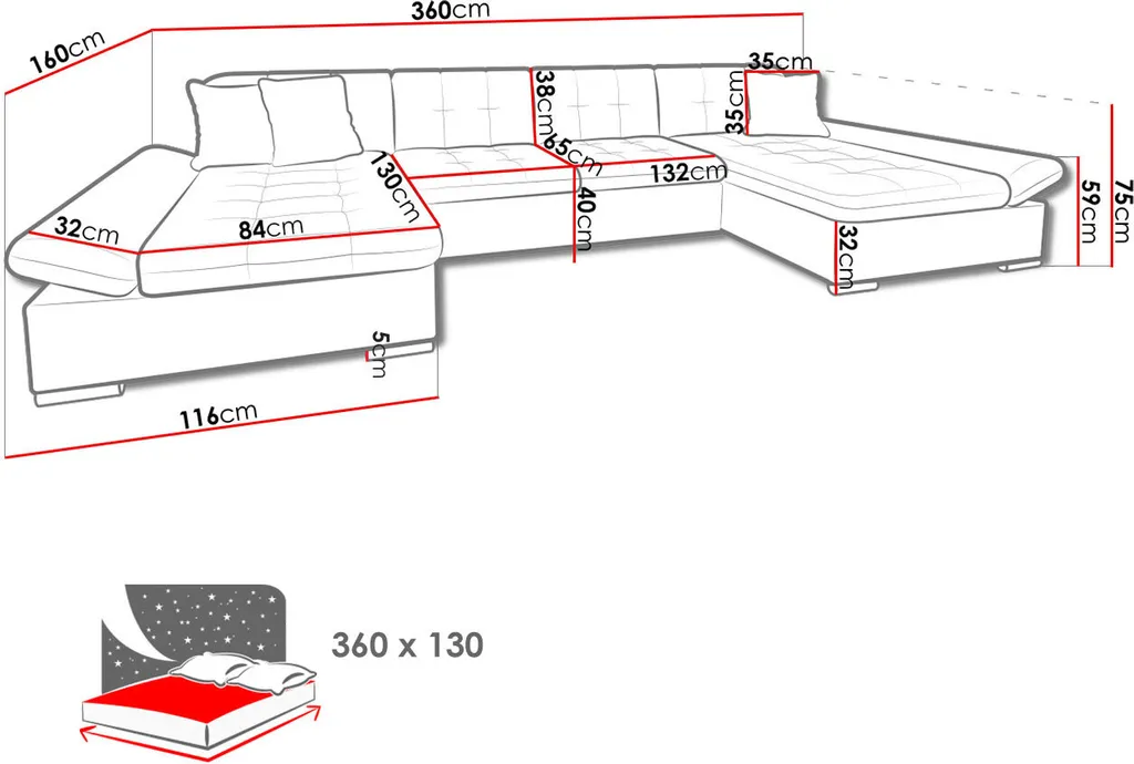 Mirjan24 Ecksofa Alia Premium Mit Regulierbare Armlehnen, U-Form Schlafsofa Vom Hersteller Mit Zwei Bettkasten (Sorriso 08 + Sorriso 08 + Modello 03)