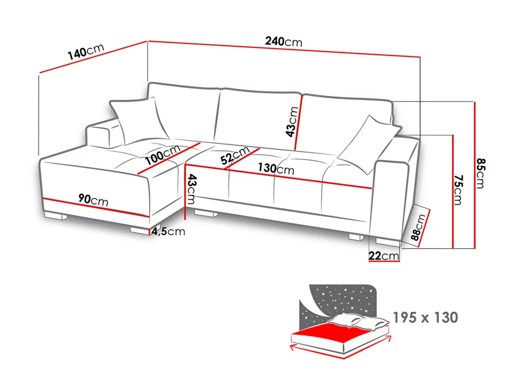 Mirjan24 Ecksofa Dallas, Elegante Eckcouch Mit Bettkasten Und Schlaffunktion, Polstersofa, Polstergarnitur, Wohnlandschaft (Seite: Rechts, Alova 04 + Alova 36)
