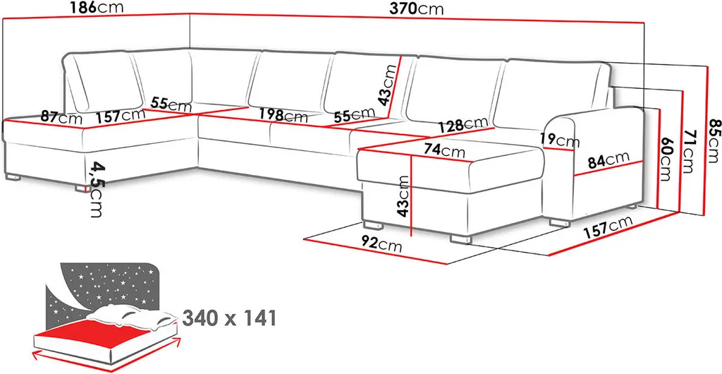Mirjan24 Ecksofa Wilma Large, U-Form Polsterecke Vom Hersteller, Schlafsofa Mit Zwei Bettkasten, Wohnlandschaft (Zetta 291, Seite: Links)