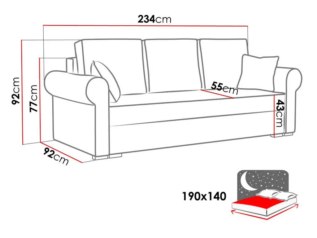 Mirjan24 Schlafsofa Olimpia Cord, Couch Mit Schlaffunktion Und Bettkasten, Freistehendes 3 Sitzer Aufklappbar Sofa (Farbe: Poso 145)