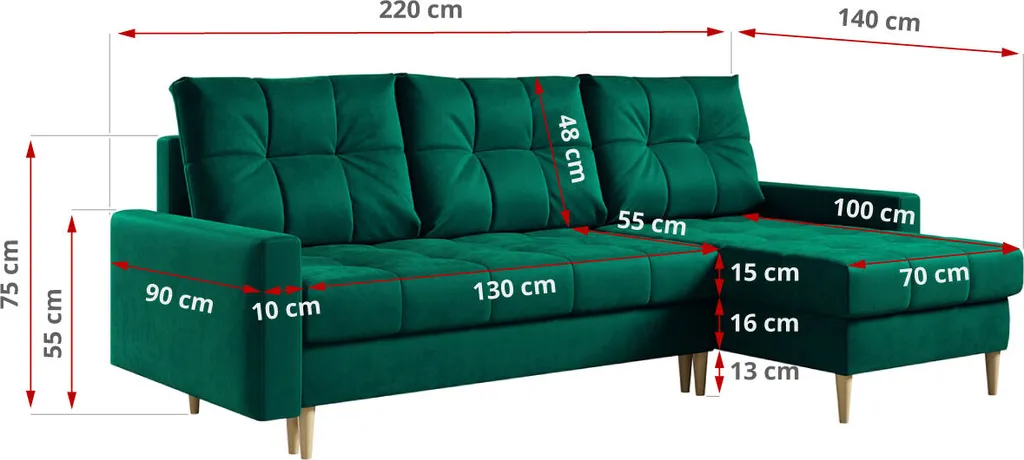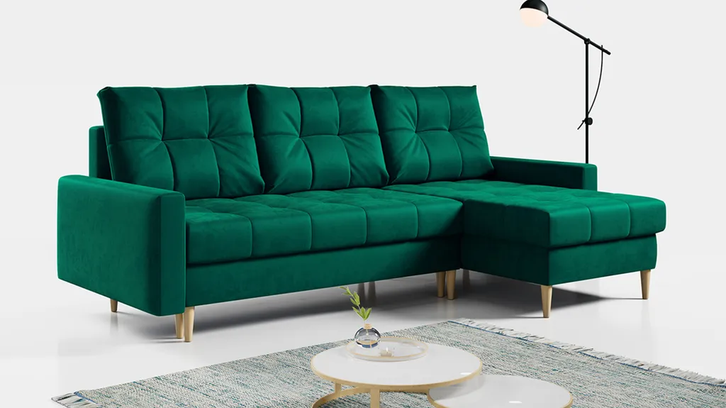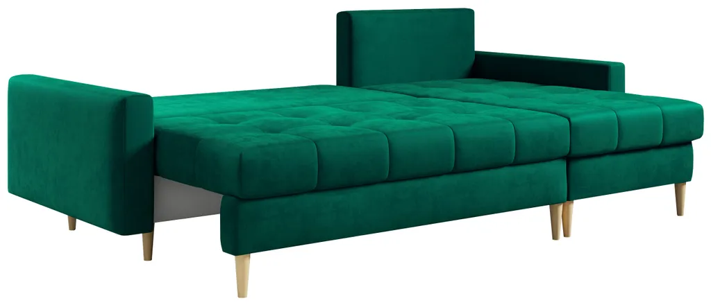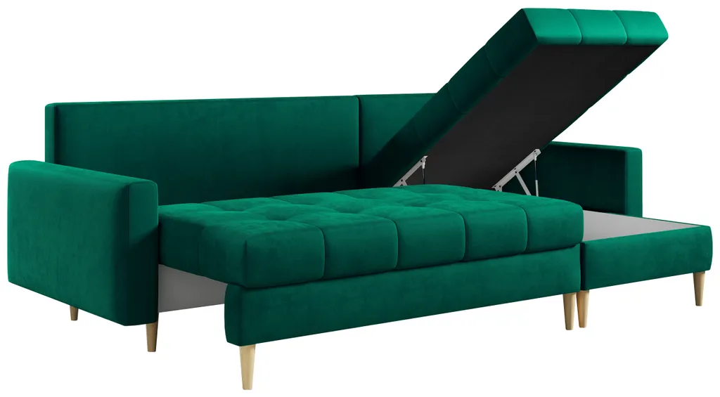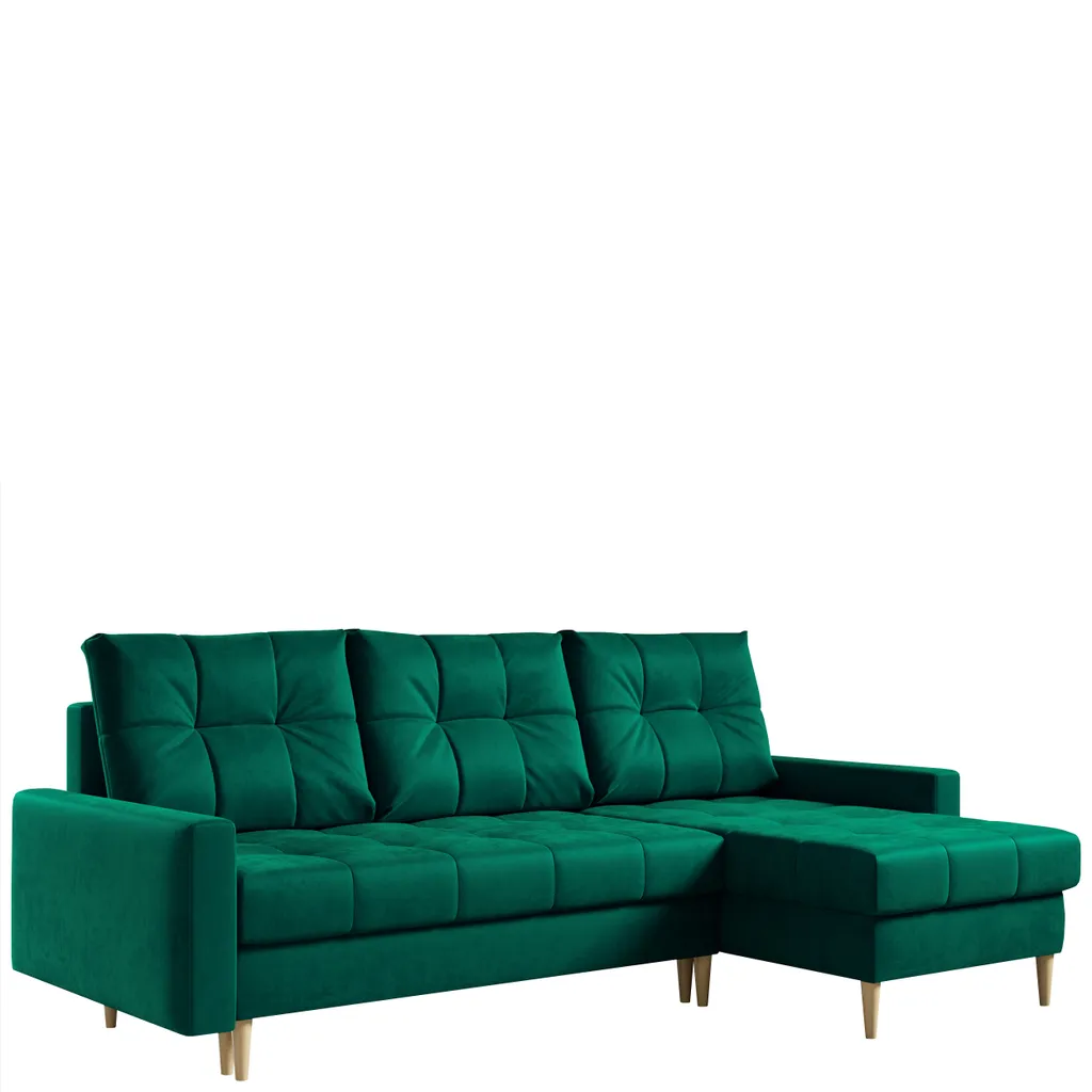 MKS MEBLE Ecksofa Wohnzimmer – Wohnlandschaft – L-Form Couch Mit Schlaffunktion – Bettsofa – Wohnzimmer L Couch – Polstersofa Mit Bettkasten – Astra Dunkelgrün