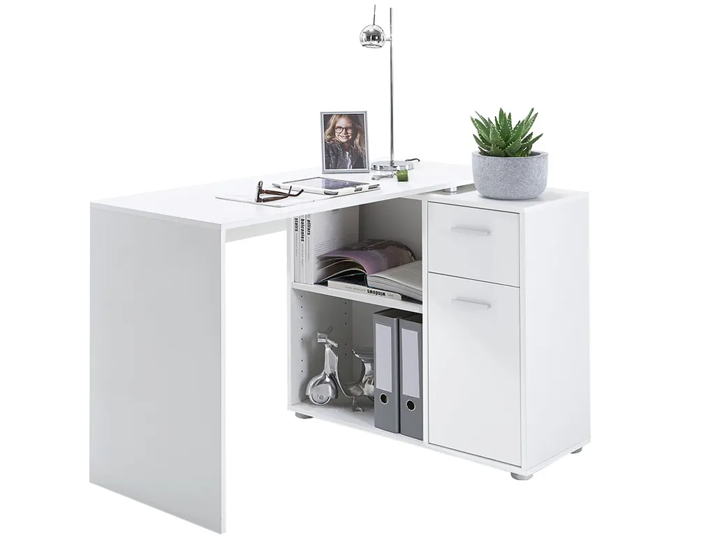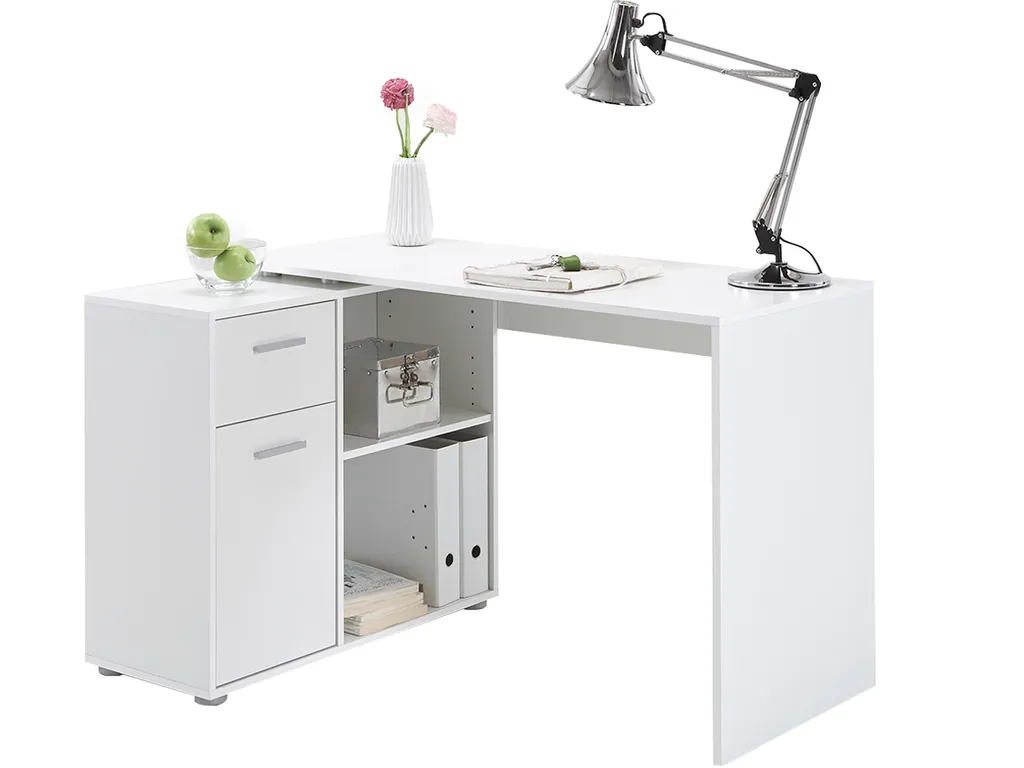 Möbelando Schreibtischkombination Schreibtisch Eckschreibtisch Arbeitstisch Carmen (Weiß)