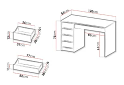 Schreibtisch PUDA, Computertisch, Gametisch, PC Tisch Schreibtisch , 130x76x51, Weiß/Weiß Glanz