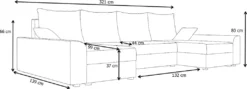 Ausziehbares Sofa ALABAMA, Schlafcouch, Bettsofa, Sofabett, U Form, 355x80x165, Sawana 05/soft 11