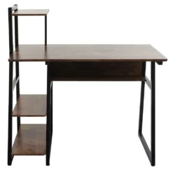 Schreibtisch Mit Regal HWC-K68, Laptoptisch Bürotisch Arbeitstisch, 100x50cm, Metall MDF Braun