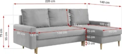 Ecksofa LANG – L-form Sofa Mit Schlaffunktion – Wohnlandschaft 220cm – Wohnzimmer L Couch – Grau