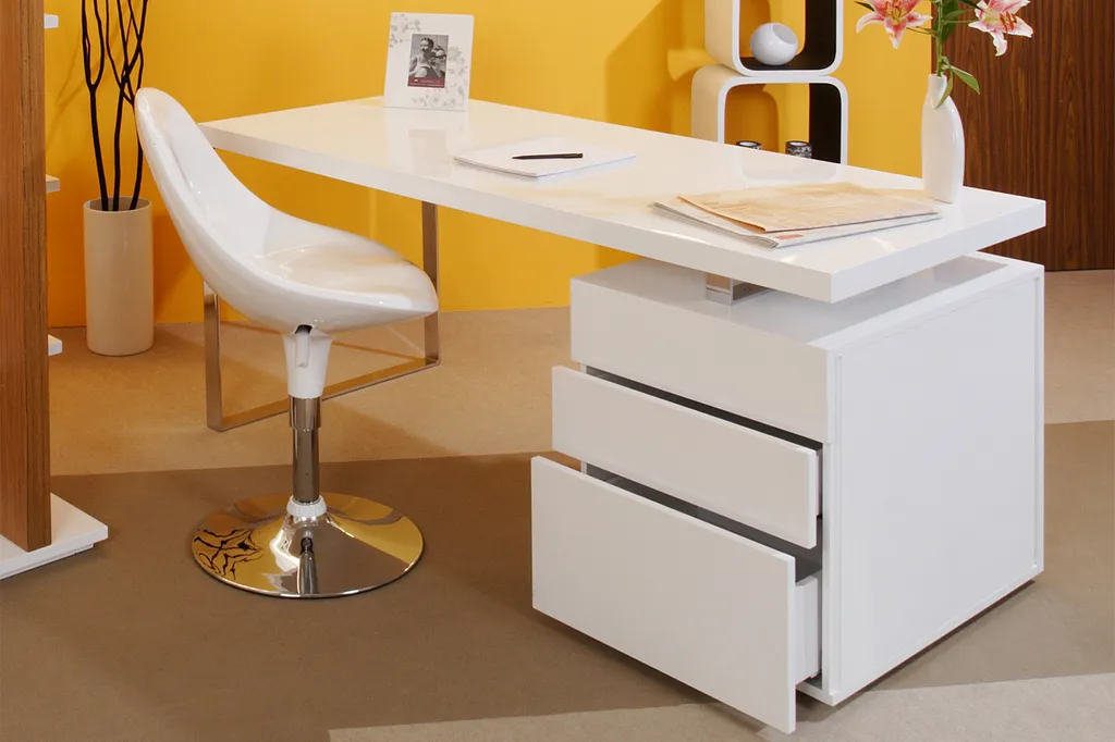 SalesFever Schreibtisch Inkl. Container 140 X 70 Cm| Hochglanz Lackiert | MDF-Holz | B 140 X T 70 X H 76 Cm | Weiß