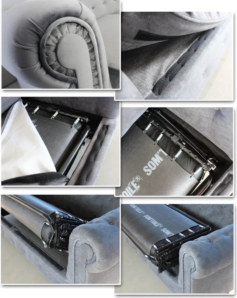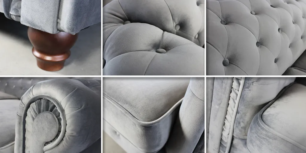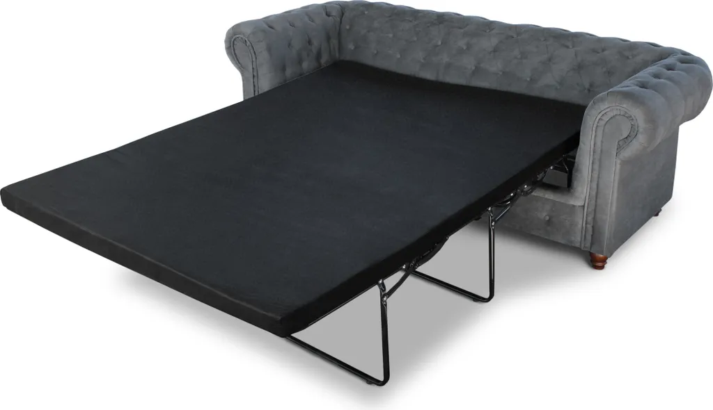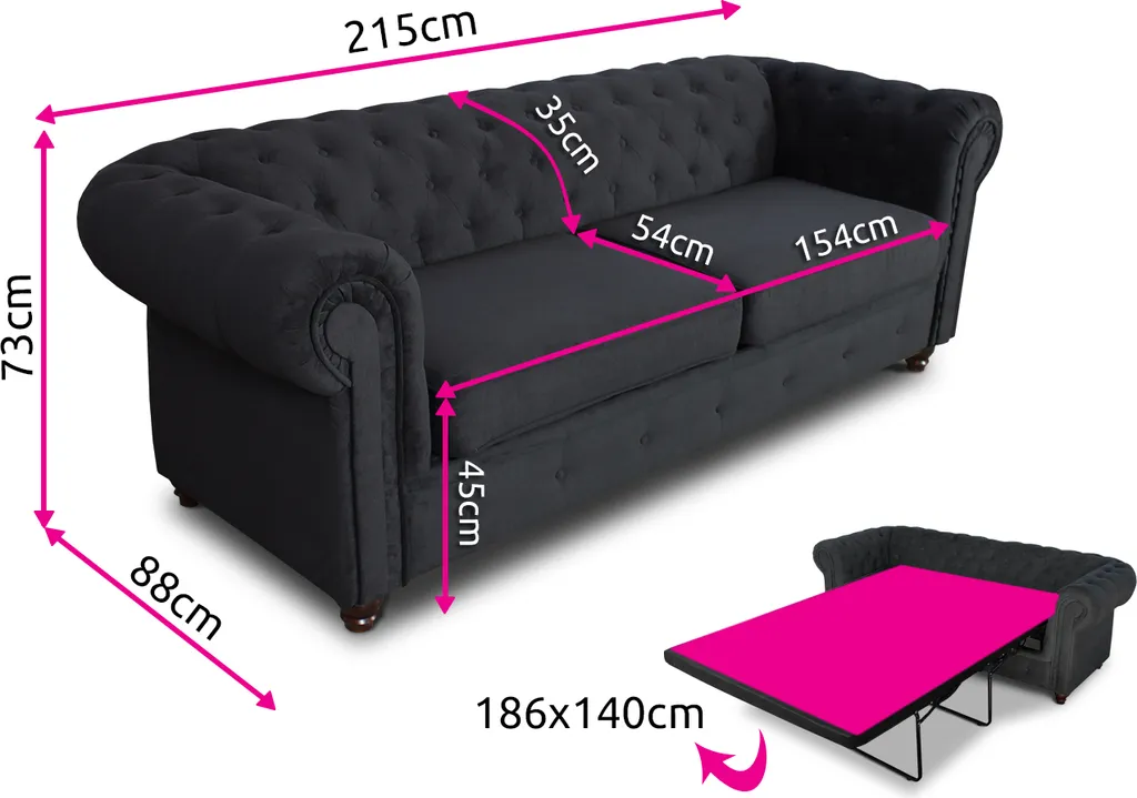 Schlafsofa Chesterfield Asti Bis 3-Sitzer, Sofa Mit Schlaffunktion, Couch 3-er, Couchgarnitur, Sofagarnitur, Holzfüße – Glamour Design, Velours (Dunkelgrün (Velvet 78))