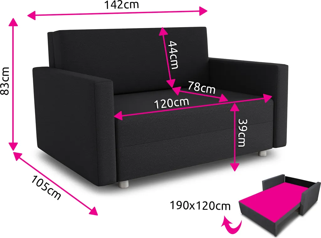 Schlafsofa Pura Maxi Mit Bettkasten – Polstersofa Mit Schlaffunktion, Sofa, Bettsofa, Wohnlandschaft (Schwarz (Suedine 24))