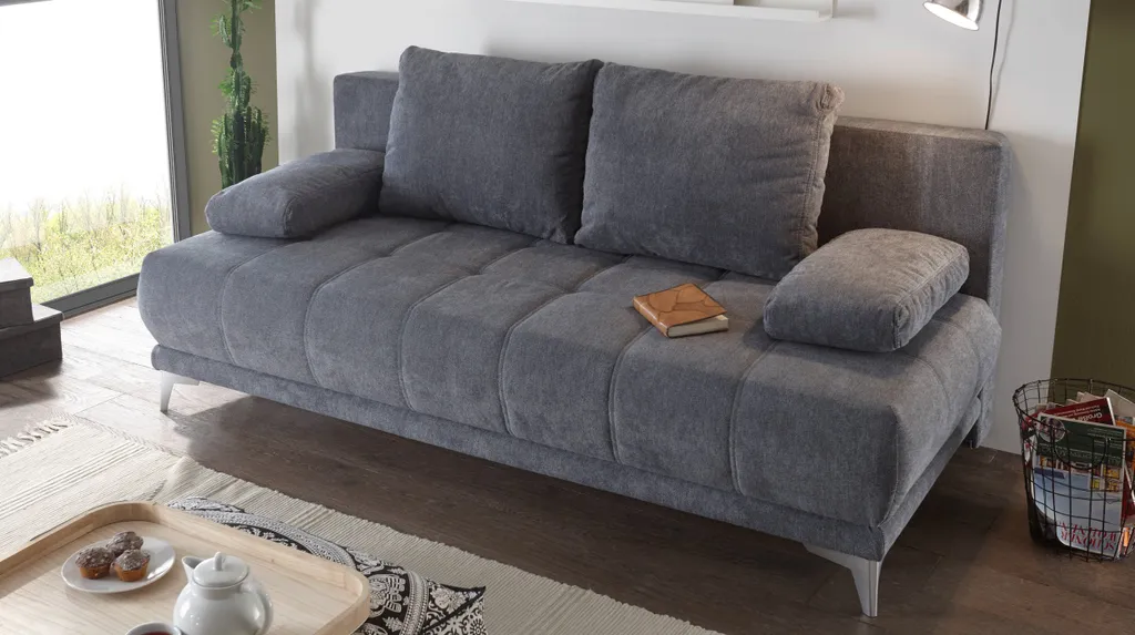 Schlafsofa Schlafcouch JENNY Grau 203 Cm Mit Bettkasten – Die Möbelfundgrube