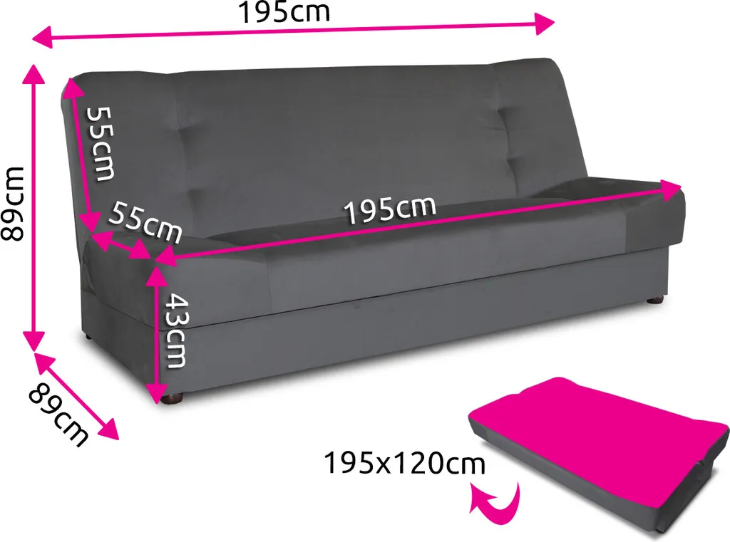 Schlafsofa Sena – Sofa Mit Schlaffunktion Und Bettkasten, Velours Stoff, Bettsofa Mit Bonell-Federkern, Couch (Grau (Manila 16))