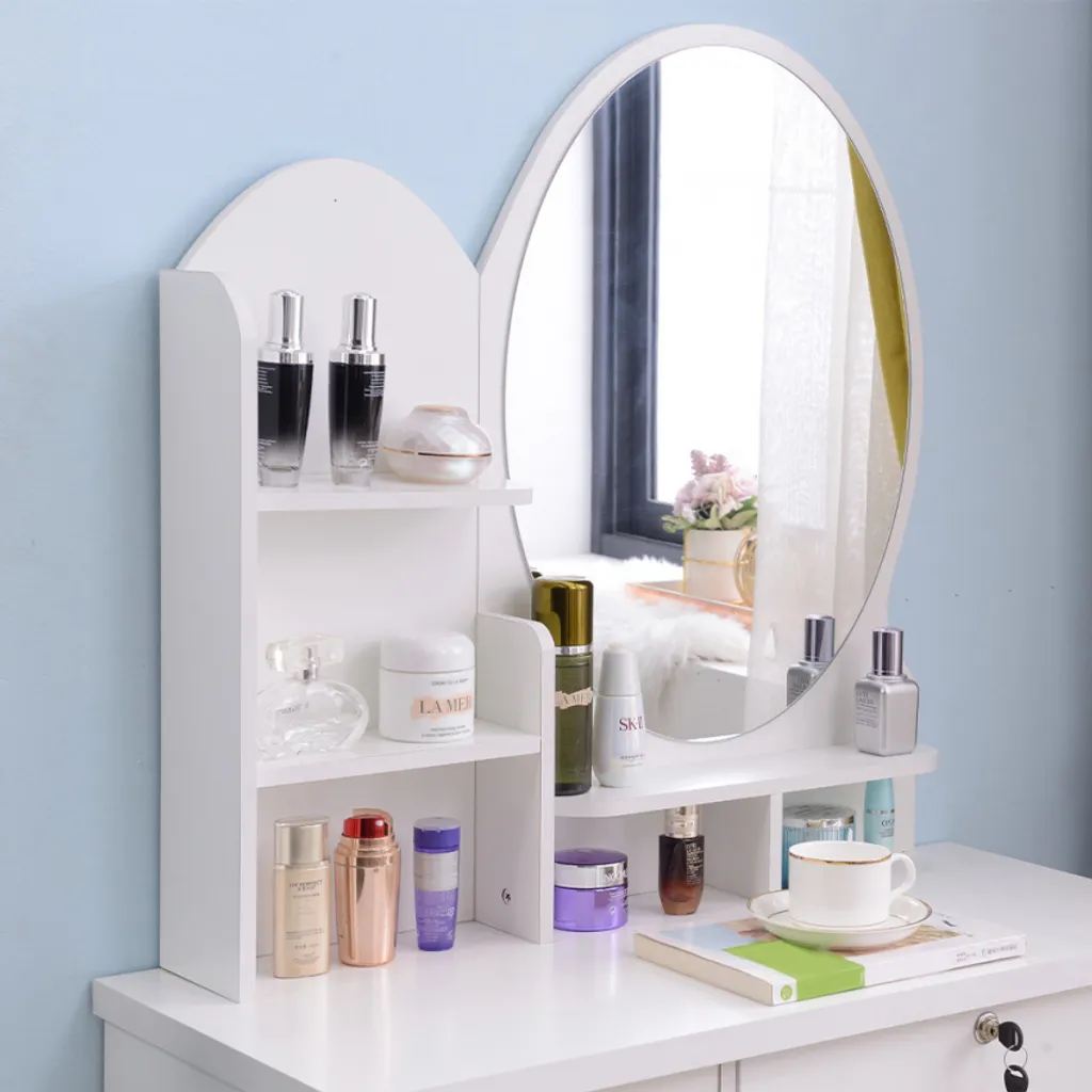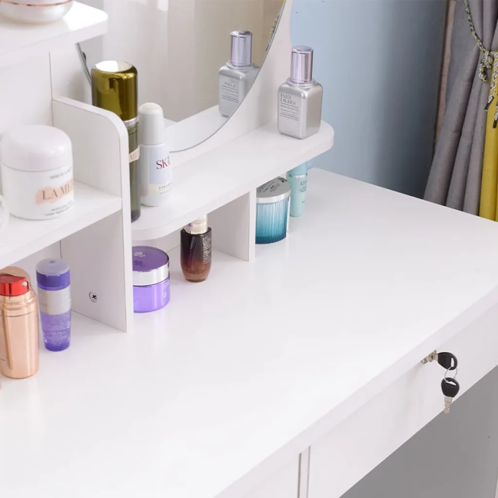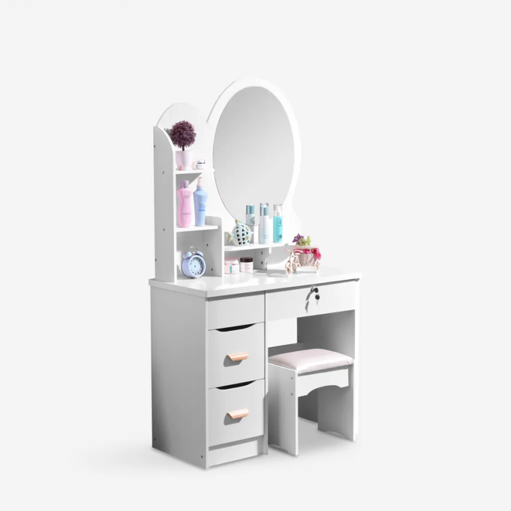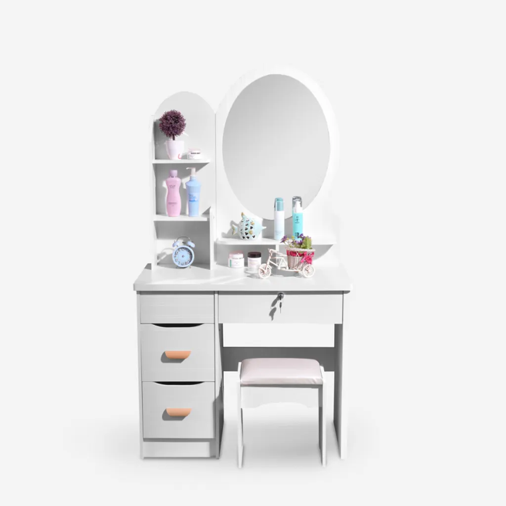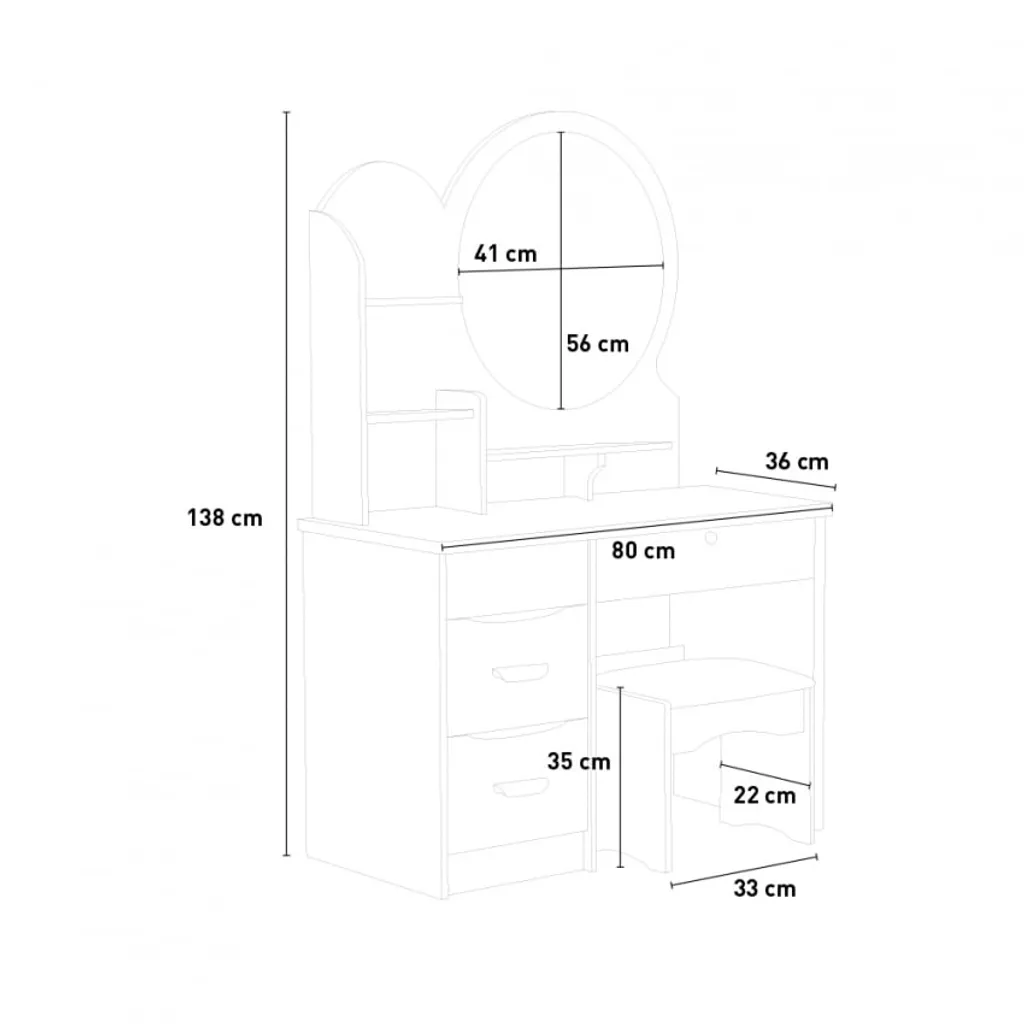 Schminkstation Runder Spiegel Hocker Schlafzimmerschrank BabetteHöhe (cm): 138, Breite (cm): 80, Tiefe (cm): 36, Zusammensetzung: WOOD, MDF, MELAMINE, Länge (cm): 36, Modell: BABETTE