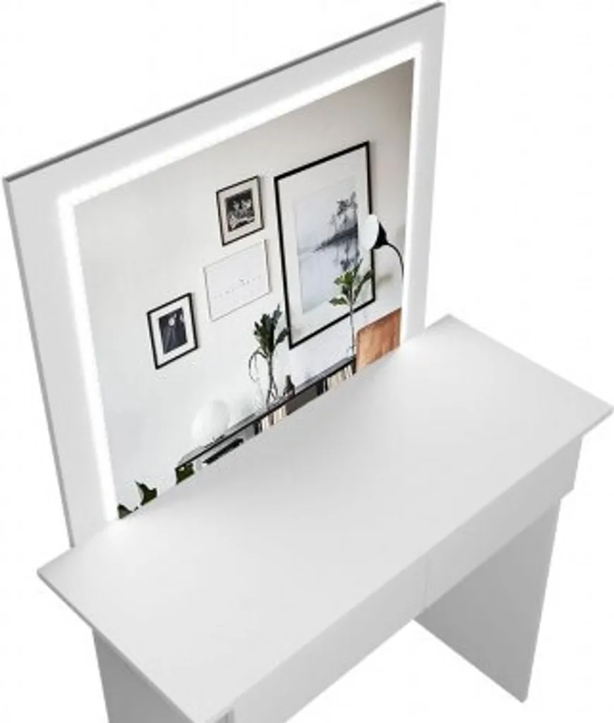Schminktisch Frisiertisch Melanie Kosmetiktisch Mit LED Beleuchtung (Weiß)